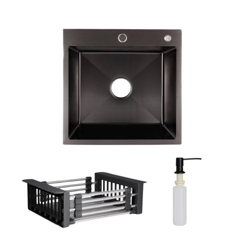 Комплект Lidz Handmade H5050B Мийка для кухні інтегрована BlackPVD у комплекті з дозатором + Lidz K01B Корзина для кухонної мийки